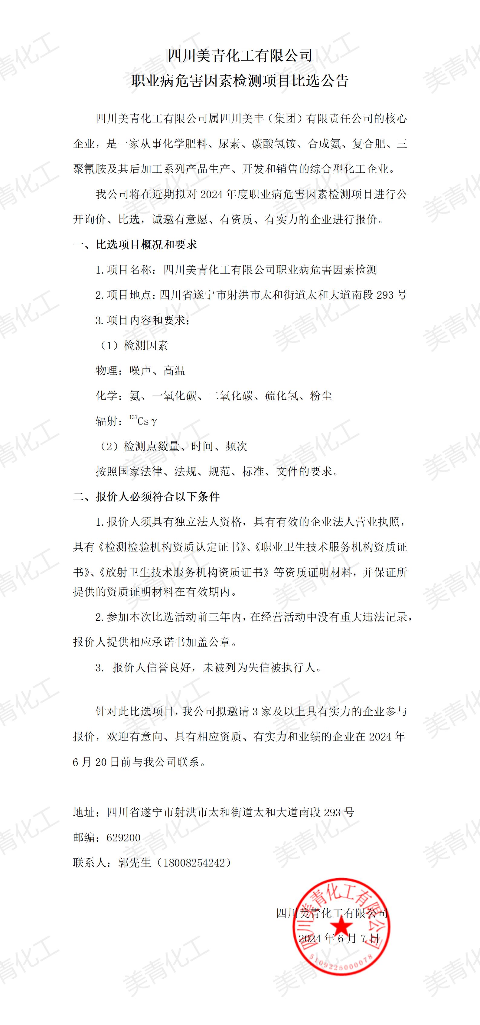 職業(yè)病危害因素檢測項目比選公告