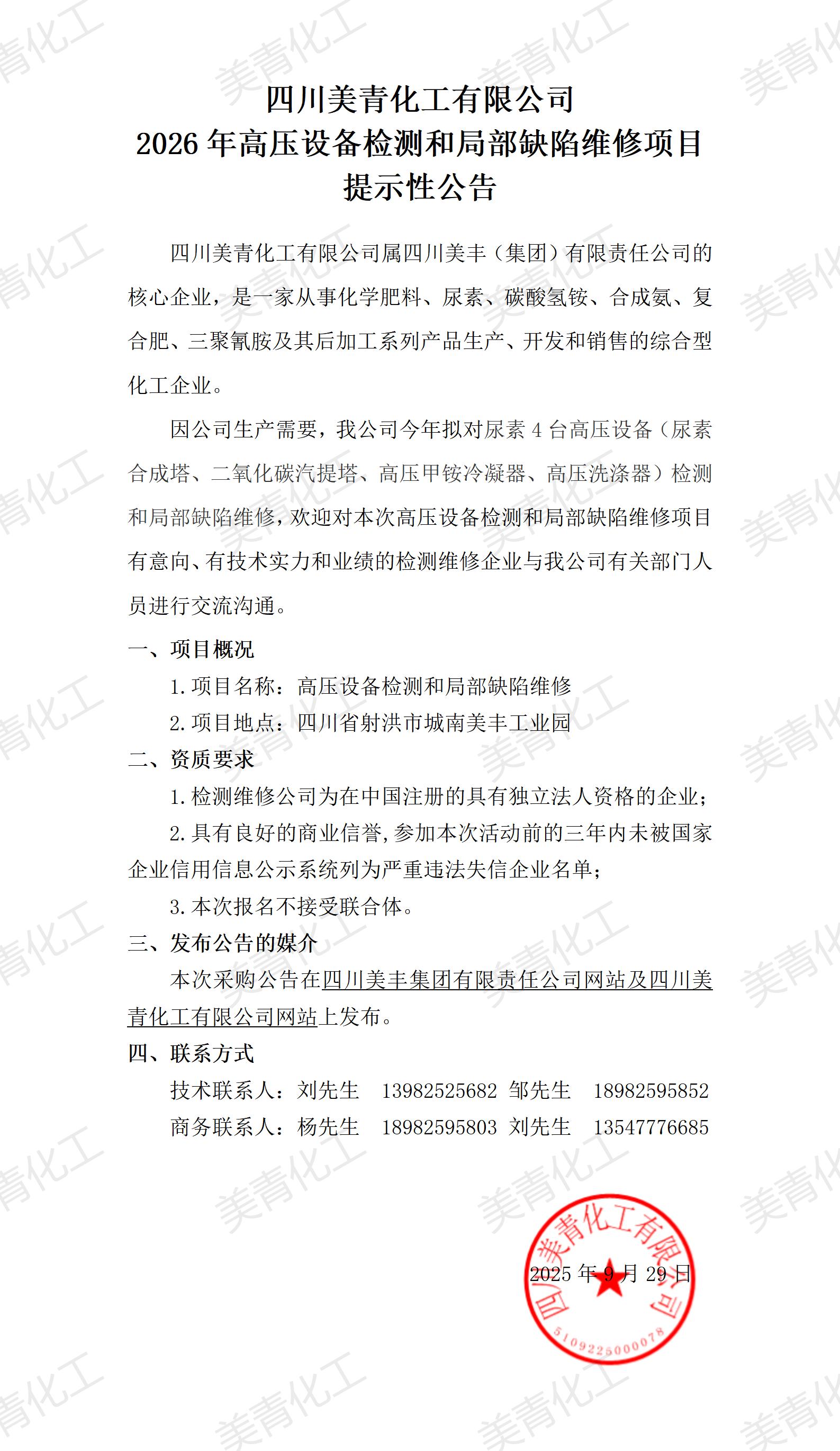 2026年高壓設(shè)備檢測和局部缺陷維修項目提示性公告